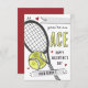 Cute tennis theme classroom Valentines feature "you're an ace" with a hand drawn tennis ball and tennis racket. Personalize with your child's name along the bottom. Space provided at top for writing recipient names.