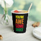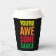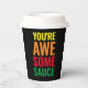 With the compliment, "You're Awesomesauce", styled in a tall block font with four bold hot pepper colors on a solid black background, these paper cups are the perfect way to toast someone special on World Compliment Day (March 1) -- or any day that you feel like making someone's day, at a party, or even at the office!