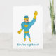 Customizable thank you for greeting card with an illustration of a smiling super hero dressed in blue and yellow costume with a cowl and a cape, with a text title “You're my hero”, text fields may be personalized to suit your needs