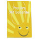 Vibrant smiling golden yellow sunshine "You are our sunshine" themed custom gift bag. The perfect gift bag for birthday parties.
