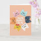 This Valentine's Day card shows six simple cat faces arranged in a circle on a soft peach background. In the center, the message reads “YOU’RE PURRFECT TO ME” in a friendly white hand-drawn script. The cats are colored pink, light blue, dark blue, white, yellow, and orange, and each one has small eyes, a tiny nose, and thin whiskers with a sweet, calm expression. The yellow cat wears a red bow with white polka dots on top of its head, which adds a fun little detail. The circular layout frames the message nicely and keeps your attention on the cats and the pun.