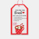 You're the Bomb Valentines Day gift. Create custom cocoa bomb tags for your bakery business. Hot chocolate bombs are all the rage this year. If you are thinking of making cocoa bombs or hot chocolate bombs then use these precut gift tags to dress up your product. Complete with your choice of colored twine to tie your gift bags.