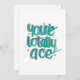 A one-off hand drawn, whimsical design suitable for lots of occasions when you want to acknowledge that special person. The lettering is teal watercolor and the back offers space for a personal message.