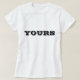 Basic Classic T Shirt in White printed with YOURS in Black text typography lettering and digital graphic design by TheFabricSeal print on demand shop at Zazzle.com #ZazzleMade https://www.zazzle.com/store/thefabricseal TheFabricSeal©️Original.