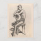A young man sitting backwards on a chair, projecting ennui. Why he's wearing bathers is anyone's guess. Drawing, from vintage postcard