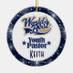 Personalized Worlds best youth pastor Christmas tree ornament makes a great Christmas gift idea for a youth pastor or the worlds greatest youth pastor.