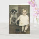 Write your own message on this card with a young child holding onto the family hound's leg