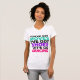 The material is a great quality that is hard to find with most tee shirts. Fabric was not see-through or thin at all, but was also very soft and comfortable. The shirt description states that it runs a little small, so I sized up one size for a perfect fit! I would definitely buy this type of tee shirt again because I love the fit and high quality fabric that I cannot find anywhere else. The printing was perfect and just as pictured. Loved the cute quote and really enjoy the tee in both the quality and design. I love quirky typography designs and funny quotes and I am extremely pleased with the overall quality and value I get at Zazzle!