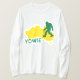 Yowie (Bigfoot) white t-shirt with green & gold graphic.