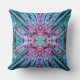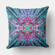 Fun and colorful op art pillow made from a photomanipulated digital image of dried out yucca plant in turquoise, magenta, blue and green.