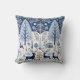 A beautiful illustration of a woodland scene with deer, trees, and animals in a blue color palette, Scandinavian-inspired artwork, detailed foliage patterns, traditional Nordic motifs, and a rustic wooden house visible in the background. A decorative border forms around all the elements. The design includes features such as deer antlers, wildflowers, leaves, fireflies, stars, and animal footprints. A beautiful design for all your Christmas festivities!