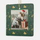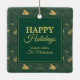 Yuletide Joy | Mickey Green & Gold Holiday Pattern Ceramic Ornament
