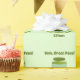 Wrapping Paper with a smiling jar of green peas baby food. The jar has round peas on each side. The words “Yum, Green Peas!” and a customizable name is also in the design.