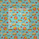 Adorable blue fabric with cheeseburgers, fries, hearts, and stars. Yum!