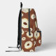 Backpack with yummy donuts on brown background