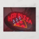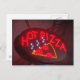 a neon red sign saying "hot pizza".