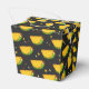Everyone loves tacos! This funny pattern has hand-drawn, cartoon style tacos on a custom black background color. Express your love for tacos with this whimsical design on customizable paper party favor boxes. Shown here on a take-out style box. Great for a taco party!