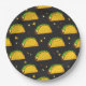 Everyone loves tacos! This funny pattern has hand-drawn, cartoon style tacos on a custom black background color. Express your love for tacos with this whimsical design on customizable paper plates. Great for a taco party!
