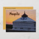 This postcard features a yurt and sunset in Mongolia. A yurt is a portable, round tent covered with skins or felt and used as a dwelling by several distinct nomadic groups in the steppes of Central Asia.