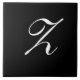 Z Monogram Initial White on Black Ceramic Tile