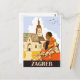 Zagreb, Croatia. Woman is looking a city cathedral from a street cafe.