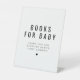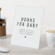 This books for baby sign features a contemporary font and modern minimalist design. Use this template to edit the fonts, font color, and background color to match your event needs. The simple black and white color combination makes it the perfect addition to any event. Use this poster for your simple and clean baby shower.