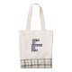 The plaid bottom caught my eye. The ability to personalize it in my own way -- font size, color, further appealed. My wife likes it a lot. The printing is fine, like the bag was created that way.