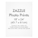 Zazzle Custom 18" x 24" Photo Print Template. Portrait 45.7cm x 61cm. Makes a great personalized birthday, anniversary or Christmas gift, with various additional frame options. Upload your own photo and fully personalize with text (dozens of font style options) and your own image, pattern, motif, or design. MEDIA: Kodak Professional Photo Paper (Satin). Developed specifically for darkroom printing, Kodak photographic paper is a premium silver-halide paper designed to dramatically enhance colors, while maintaining consistent tonal reproduction.