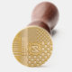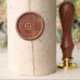 Before the wax hardens, gently and evenly press the wax seal stamp into the melted wax, ensuring it's centered.
