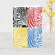 Zebra art in 4 distinctive colors: black, yellow, blue and red. Zebra art can be customized and re-scaled if necessary. Room for text on the inside of the card.