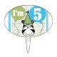 Zebra 5th Birthday cake topper features a zebra in a party hat, balloons, polka dots of green on white, and text that reads "I'm 5"!