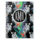 Zebra And Exotic Flowers Pattern | Monogram Notebook