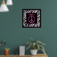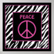 This poster features black and white zebra stripes accented in Pink. Pink peace sign and the word "PEACE". It is perfect for teens and pre-teens who are into animal prints and/or peace sign decor. Also available in Purple, Lime Green and Turquoise.