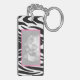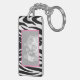 Zebra striped with pink photo frame keychain, customize with two of your own photos and add text if you wish.