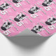 Birthday wrapping paper in bright pink with a zebras face design. Personalize this zebra art birthday paper with your child's name and age. Currently reads Happy Birthday Olivia 4 today. Zebra face painted in watercolor and designed by Sarah Trett.