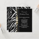 Zebra Birthday Party Gold Black White Floral Invitation