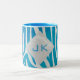 Zebra Blue and White with Monogram Two-Tone Coffee Mug