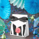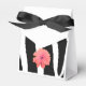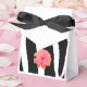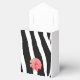 A modern classic black and white zebra pattern with a pretty flower accents these favor boxes.