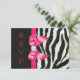 Personalized RSVP flat note cards printed on invitation paper of your choice. Elegant custom black and white zebra stripes and hot pink printed bow personalized rsvps for any event:- weddings, baby showers, bridal showers, womens birthday party, sweet 16 parties, quinceanera celebrations etc. with funky black and white zebra animal fur stripes pattern printed image, cute, shiny, girly hot pink printed bows and ribbons images and pretty digital diamonds bling jewels on a black background with fancy cursive hot pink text. Please note: All invites on Zazzle have flat printed images. These classy, fashionable, fun and glamorous, glitz and glamour cards are decorated / printed on both sides. Beautiful, chic, trendy, modern personalised cards. Text, font and color of font can all be customized to meet your needs. If you need assistance customizing your product please contact me through my store. I will be happy to help. I have matching products in my store.