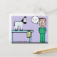 A sick zebra is sitting in a hospital room. A doctor says, "get well soon". The zebra is wearing a hospital gown. This object is a postcard. http://zebrahumor.wordpress.com