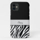 Custom monogram iPhone 5 cases with black and white zebra stripes pattern will protect your phone in style! Personalize with any initials or name and change the background color if you want, this iPhone 5 case will let you carry your mobile phone in style and has openings for all ports and connections.