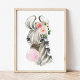 Zebra, Jungle, Pink Bubble Gum, Girl Nursery Poster
