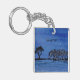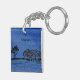 A watercolor painting of zebras at an evening watering hole adorns this customizable keychain!