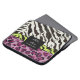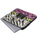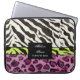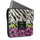This wild and fun leopard print computer case sleeve art is new and contemporary. Featuring stylized, hand watercolored zebra and leopard print art which was hand painted. The top print is a white and black Zebra stripe, with lime green and black narrower ribbon and a bottom pattern of hot pink leopard print. Your name goes in the black tag in the center of the design. There are several colors of leopard print and zebra print available. Your name or names personalize the case. There are also I-Phone and I-Pad cases to match. If we don't have the case you're looking for just email us and we'll make it for you.