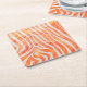 Zebra Orange and White Print Square Paper Coaster