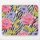 Zebra Pattern Pink Flowers and Stripes Mouse Pad