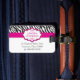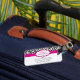 This luggage tag is all about being a girly girl. Zebra print makes a striking background for an ornate frame on a polka dot fuchsia ribbon. A name or other message is showcased in the frame surrounded by curly ornaments. Add an address or other contact information below. Available in alternate colors with matching products.