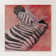 Portrait of Zebra head on red color wash background.