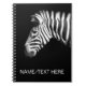 Zebra Portrait on Black Personalized Name or Text Notebook