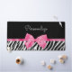 Elevate your style with this chic black-and-white zebra print design accented by a vibrant hot pink satin-style bow (flat printed image, not a real bow). The bold animal-print pattern adds a trendy, fashionable touch, while the elegant black top section includes a customizable text area for personal names, monograms, or special messages. A sleek printed pink ribbon divider enhances the glamorous look, making this design perfect for gifting, boutique branding, fashion accessories, stationery, or feminine business products. Ideal for anyone who loves modern glam, animal prints, and stylish personalized décor, this design stands out beautifully on Zazzle’s customizable items.